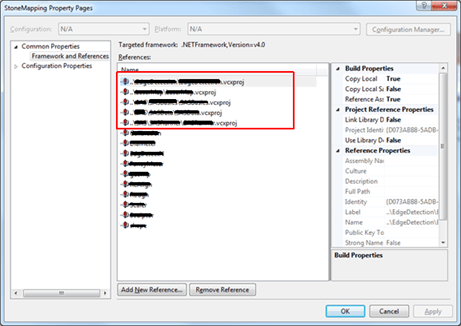 Moreover, VS2010 didn’t show the external references in the references tab. Not only does VS2012 show the missing projects, it (probably unintentionally) makes it easy to distinguish them by displaying them as the explicit path (as stored in the referencing vcxproj file), and not the referenced project name:
